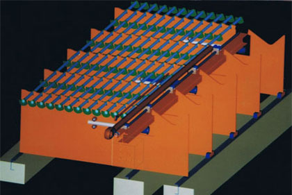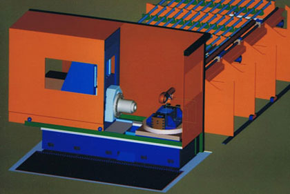 und gesteuertem Längstransport mit integrierter Stangendrehung |