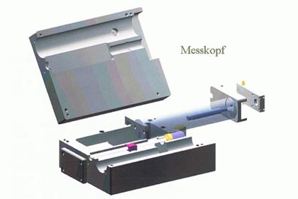 Wie ein Mikrometer-Messbügel, nur beidseitig messen und viel genauer. |