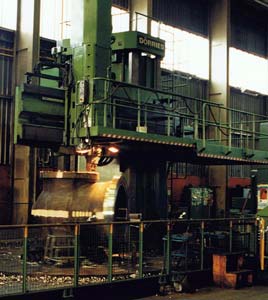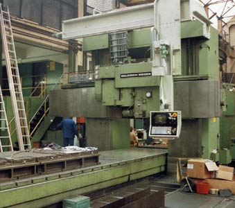 Bei Umrüstung der konventionellen Waldrich-Portalfräsmaschine auf die Grips-Steuerung muss das Bedienpult auch über höhere Werkstücke hinweg auf die andere Seite gebracht werden. Das kann man von |